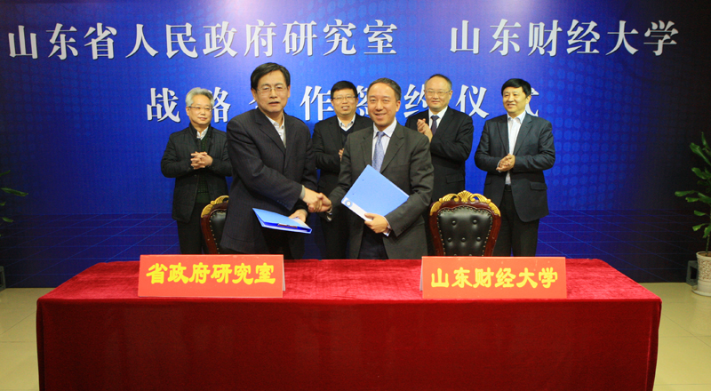 2月4日上午,省政府研究室与我校战略合作协议签约仪式在舜耕校区举行。省政府研究室主任、党组书记刘险峰,巡视员聂炳华、副巡视员宋向平,我校党委书记刘兴云、校长卓志、副校长綦好东出席仪式。聂炳华、卓志代表双方签署战略合作协议。副校长胡文波主持仪式。