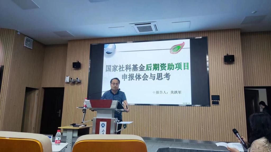 为做好2023年国家社科基金后期资助暨优秀博士论文出版项目申报工作,提升我校教师申报积极性,深入了解和掌握国家社科基金后期资助项目的特点和规律,提高项目申报质量,6月8日,科研处组织召开国家社科基金后期资助暨优秀博士论文出版项目申报经验分享会。学校邀请连续主持承担国家社科基金后期资助项目的项目负责人关洪军和于朝印做了申报经验分享和交流。会议由科研处副处长于楠楠主持。