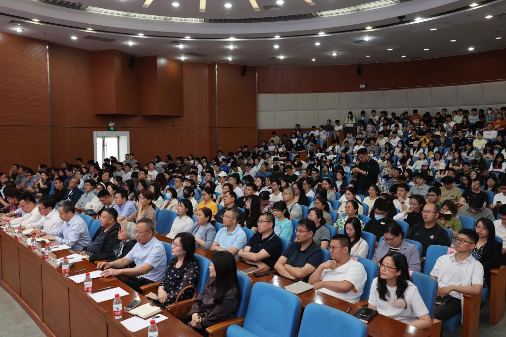 大讲坛正式开讲之前,查玉喜和洪俊杰还与郑志明院士一行进行了亲切交谈。党委学生工作部、教务处、科研处、学科建设办公室、管理科学与工程学院、统计与数学学院、计算机科学与技术学院和山东省区块链金融重点实验室等职能部门、相关学院和研究机构负责人及师生近900人参加了本次大讲坛。