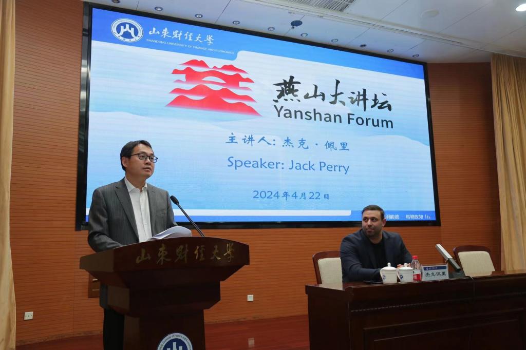 4月22日下午,由我校主办、科研处和国际交流与合作处联合承办的“燕山大讲坛”(第二期)通过线上线下形式在燕山和圣井两个校区进行。英国48家集团俱乐部主席、伦敦出口集团公司总裁杰克·佩里(Jack Perry)教授作了题为“Leaders of Tomorrow-Mastering the Mind”的精彩演讲。本期大讲坛由校长洪俊杰教授主持,学校科研处、国际交流合作处以及学生工作处相关负责同志及师生代表聆听报告。