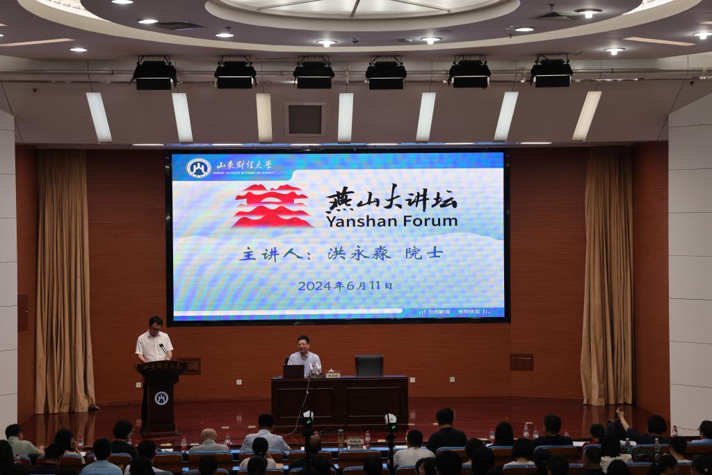 6月11日下午,由我校主办,科研处、学科建设办公室、统计与数学学院承办的“燕山大讲坛”(第八期)在燕山校区和圣井校区同时举行。中国科学院数学与系统科学研究院关肇直首席研究员、中国科学院大学经济与管理学院院长、发展中国家科学院院士、世界计量经济学会会士、教育部高等学校经济学类专业教学指导委员会副主任委员洪永淼教授作了题为《数智时代计量经济学与统计学研究范式的演变》的学术报告。本期大讲坛由校长洪俊杰教授主持。