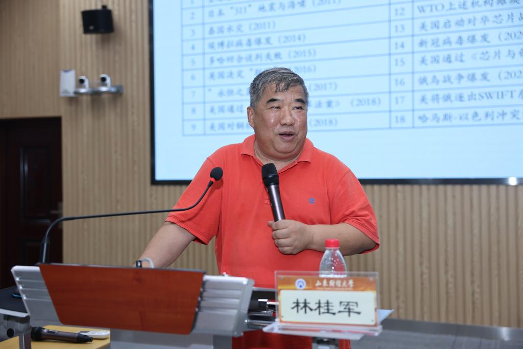 7月5日下午,由我校主办,科研处、学科建设办公室、国际经贸学院、公共管理学院承办的“燕山大讲坛”(第十期)在燕山校区举行。对外经济贸易大学原副校长林桂军教授作了题为《变化世界格局下对外开放新视野与山东的路径》的学术报告。本期大讲坛由校长洪俊杰教授主持。
