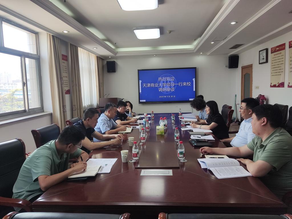 5月20日下午,天津商业大学科研处处长刘斌一行来我校调研交流。科研处处长郭健主持会议。