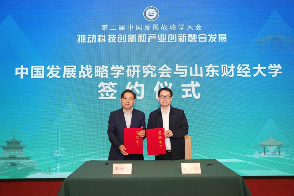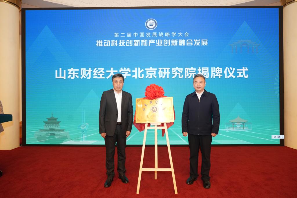 大会举行了山东财经大学与中国发展战略学研究会战略合作签约暨北京研究院揭牌仪式。查玉喜与潘教峰共同为“山东财经大学北京研究院”揭牌,双方代表就共建山东财经大学北京研究院签署战略合作协议。北京研究院将发挥双方优势,通过联合课题攻关、举办高端论坛、常态学术交流、成果转化对接等形式,推动学术研究与政策实践的深度融合,为国家和区域经济社会发展提供智力支持。