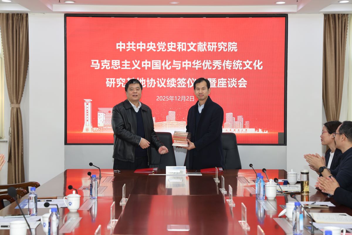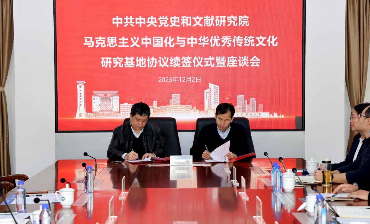 12月2日,“中共中央党史和文献研究院马克思主义中国化与中华优秀传统文化研究基地”协议续签仪式在燕山校区举行。中共中央党史和文献研究院信息资料馆副馆长陶永祥、学校党委副书记谢申祥出席仪式并致辞。
