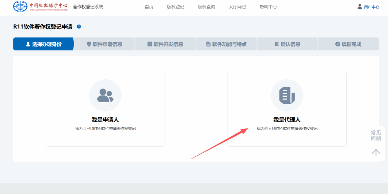 (1)第一步:按系统提示选择办理身份,并根据实际申请情形如实填写。