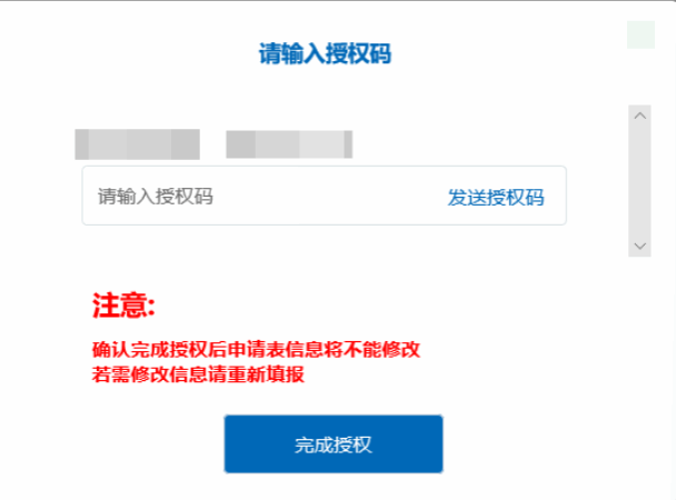(6)第六步:按系统提示提交申请信息。申请提交过程中需由科研处管理员配合提供授权码(授权码24小时内有效)。授权码具体申请方式和集中办理时间见注意事项。