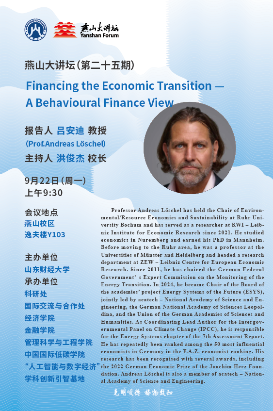 燕山大讲坛(第二十五期):Financing the Economic Transition——A Behavioural Finance View