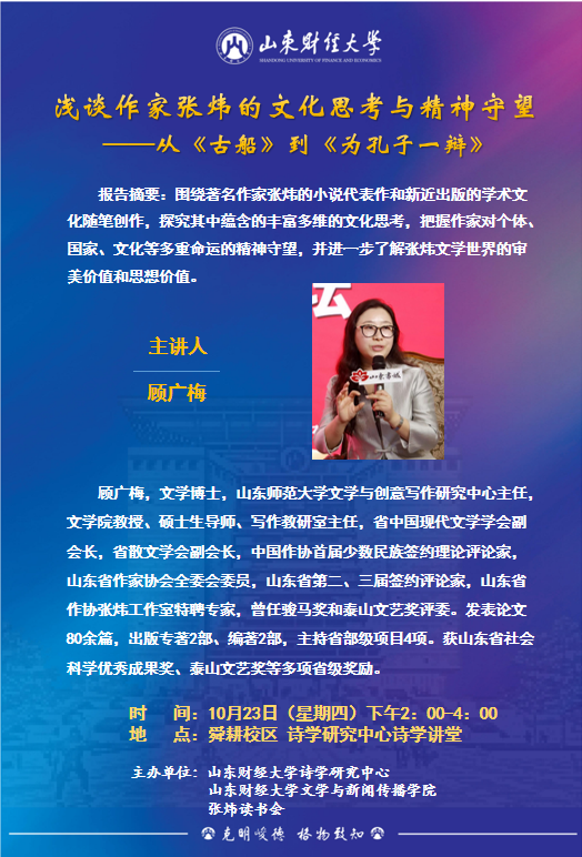 文学讲堂:浅谈作家张炜的文化思考与精神守望——从《古船》到《为孔子一辩》