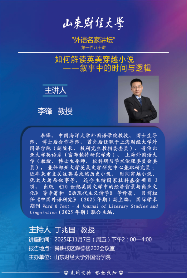 “外语名家讲坛”第一百八十讲:如何解读英美穿越小说--叙事中的时间与逻辑