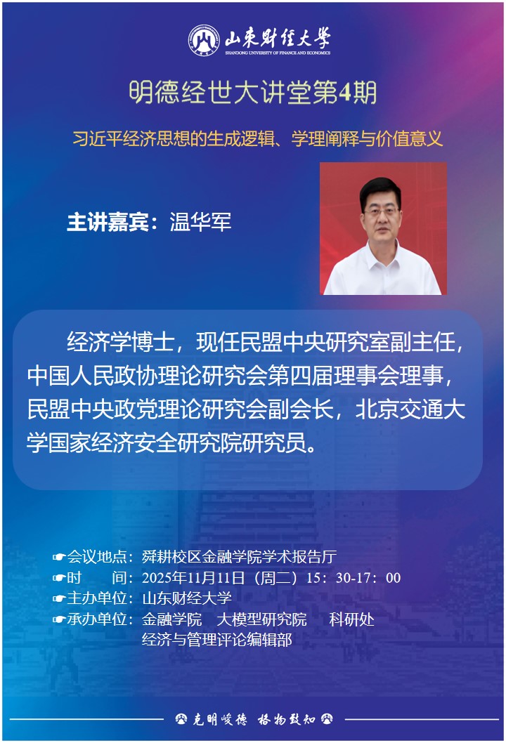 明德经世大讲堂(第4期)--习近平经济思想的生成逻辑、学理阐释与价值意义