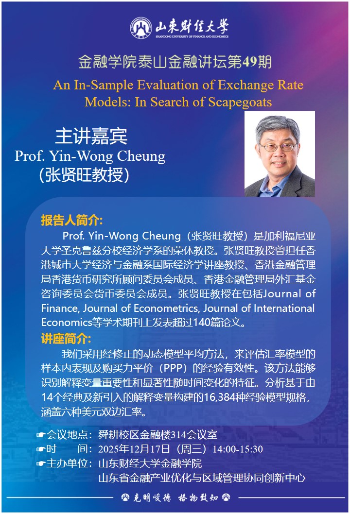 泰山金融讲坛(第49期)---An In-Sample Evaluation of Exchange Rate Models: In Search of Scapegoats