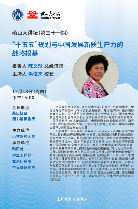 燕山大讲坛(第三十一期):“十五五”规划与中国发展新质生产力的战略根基