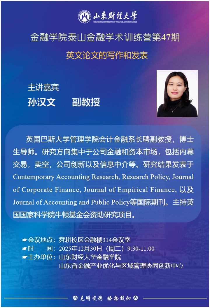 泰山金融学术训练营(第47期)——英文论文的写作和发表