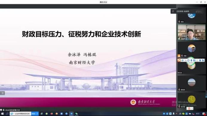 11月24日上午,财政税务学院2022年第8期财税学术讲座以线上方式举行,南京财经大学财税学院院长余泳泽做了题为“财政目标压力、征税努力与企业创新”的学术报告。财税学院院长李森主持会议,财税学院部分青年教师参加会议。