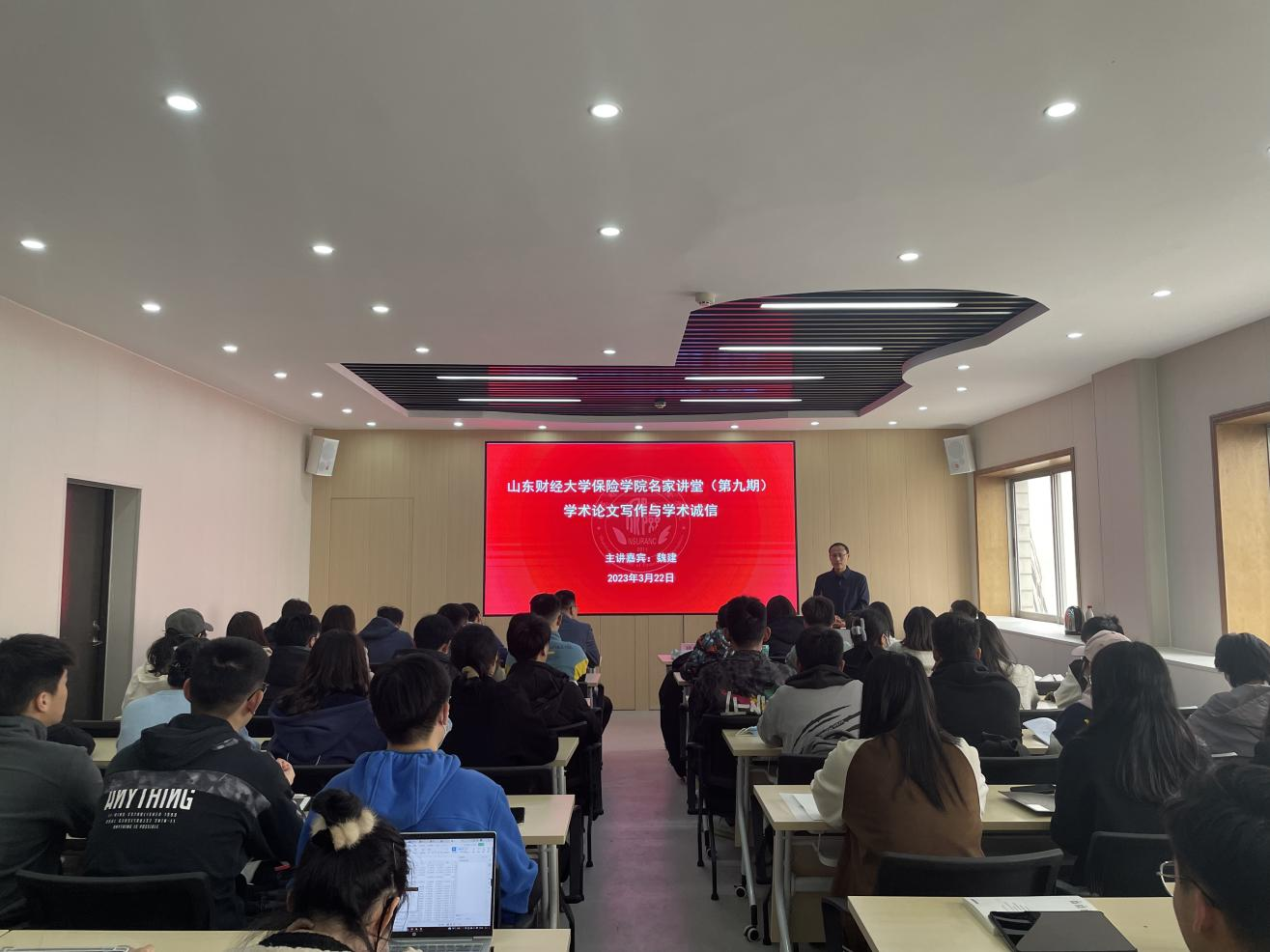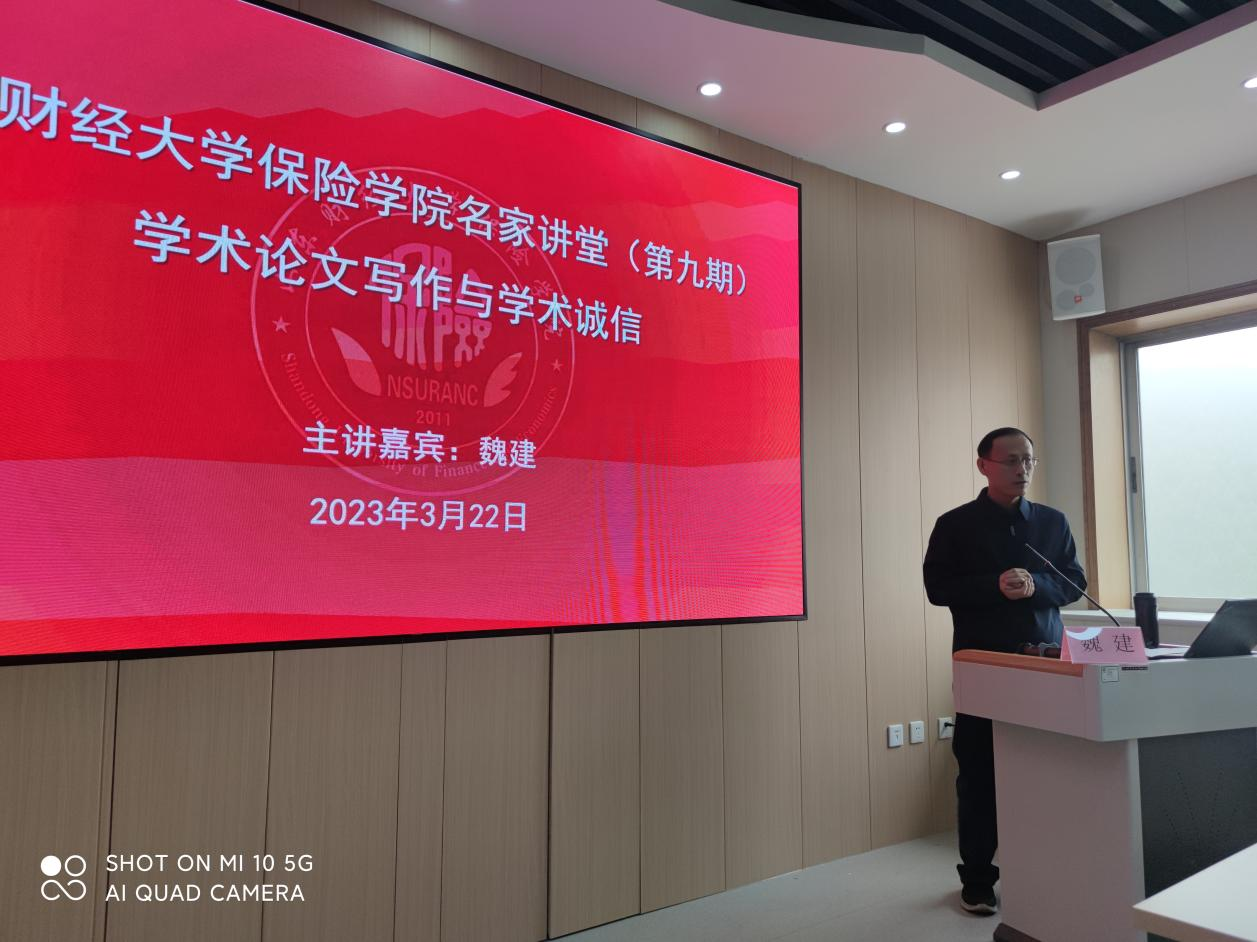 3月22日下午14:30,山东财经大学保险学院在舜耕校区办公楼15楼报告厅举办学术科研诚信专题报告。报告特邀山东大学魏建教授为主讲嘉宾,山东财经大学保险学院院长于文广教授主持,学院教师、硕博研究生、本科生和外学院师生等60余人现场参与。
