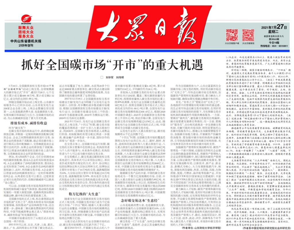 伴随全国碳市场启动上线交易,山东碳市场服务中心已同步启动,山东首批发电行业338家企业全部上线,上线企业数量位居全国第一。山东是能源消费大省,也是碳排放大省,实现双碳目标面临巨大压力。全国碳市场的启动,为山东碳减排创造了重大历史机遇。